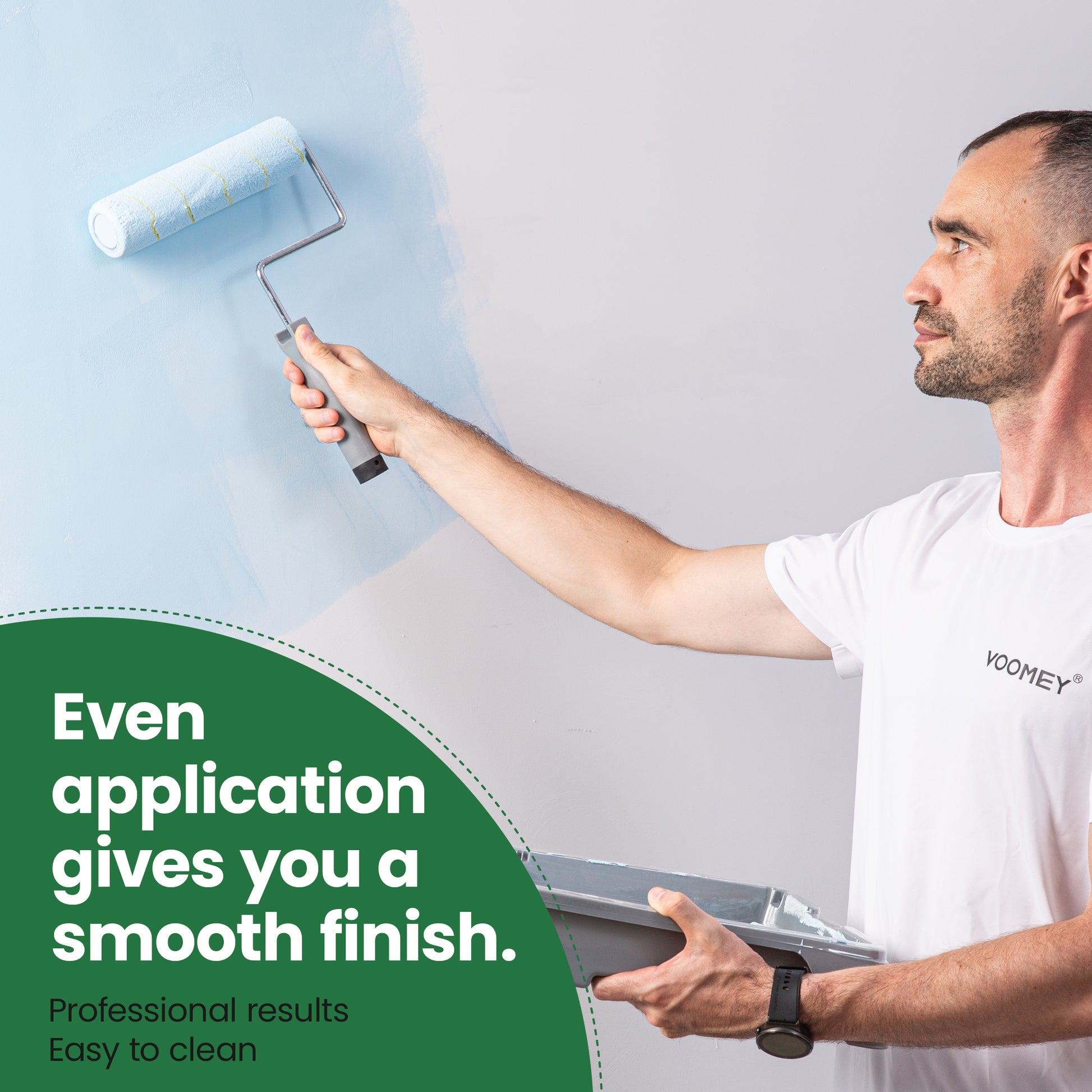 I'm always on the lookout for high-quality painting tools that make my projects easier and more efficient. The VOOMEY 18" Paint Roller Frame has exceeded my expectations in every way. This versatile roller frame is suitable for large-scale painting projects and can be used with an extension pole for added convenience.The adjustable design accommodates standard roller covers ranging from 12 to 18 inches, making it perfect for various painting tasks. The sturdy yet lightweight construction ensures durability and ease of use, while the precise markings on the frame allow for accurate positioning.I particularly appreciate the compatibility with extension poles, as it allows me to reach high walls and ceilings without the need for a ladder. The roller frame's grip is comfortable and provides excellent control during the painting process.Overall, I highly recommend the VOOMEY 18" Paint Roller Frame for anyone looking for a reliable, adaptable, and user-friendly painting tool. This high-quality roller frame is a valuable addition to any painter's toolkit and will undoubtedly make your painting projects more manageable and enjoyable.